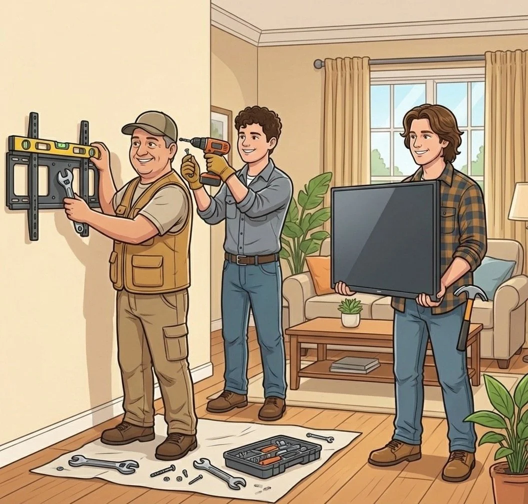 We provide the professional precision and safety your home deserves! Unlike the guys who leave behind drywall dust and crooked screens, we prioritize a spotless workspace and handle the heavy lifting for you—including full tech setup and furniture rearrangement. As your helpful neighbor in Ocala, we don't just hang TVs; we provide a stress-free, premium experience where quality and safety are never sacrificed for speed. Choose the peace of mind that comes with a job done right the first time by a local team that treats your home like our own.